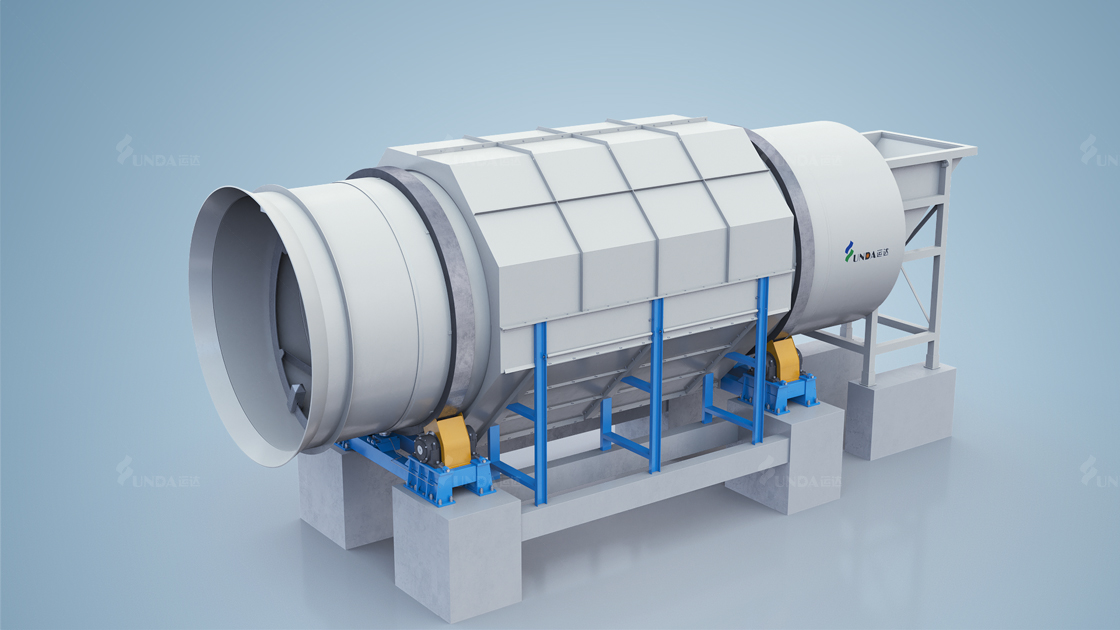 Плотно спрессованная макулатура цепным конвейером подается в загрузочное устройство, откуда поступает во вращающийся цилиндр для разрушения и первичной сортировки. Подъемные плиты поднимают материал на определенную высоту, а затем освобождают его. Материалы свободно падают и ударяются о спиральную ленту, другие подъемные плиты и внутреннюю стенку цилиндра, после чего отбрасываются, прессуются, разбиваются, дробятся, колотятся и рвутся. Одновременно материалы движутся вперед под действием спиральной ленты. Этот процесс повторяется снова и снова. Затем происходит разрыв плотных кип. Твердые частицы примесей отделяются через отверстия и попадают в бак для отбросов. Разрыхленная макулатура поступает на сортировочный цепной конвейер через выход рулонного прерывателя, затем сортируется вручную и подается в систему разбиватели.